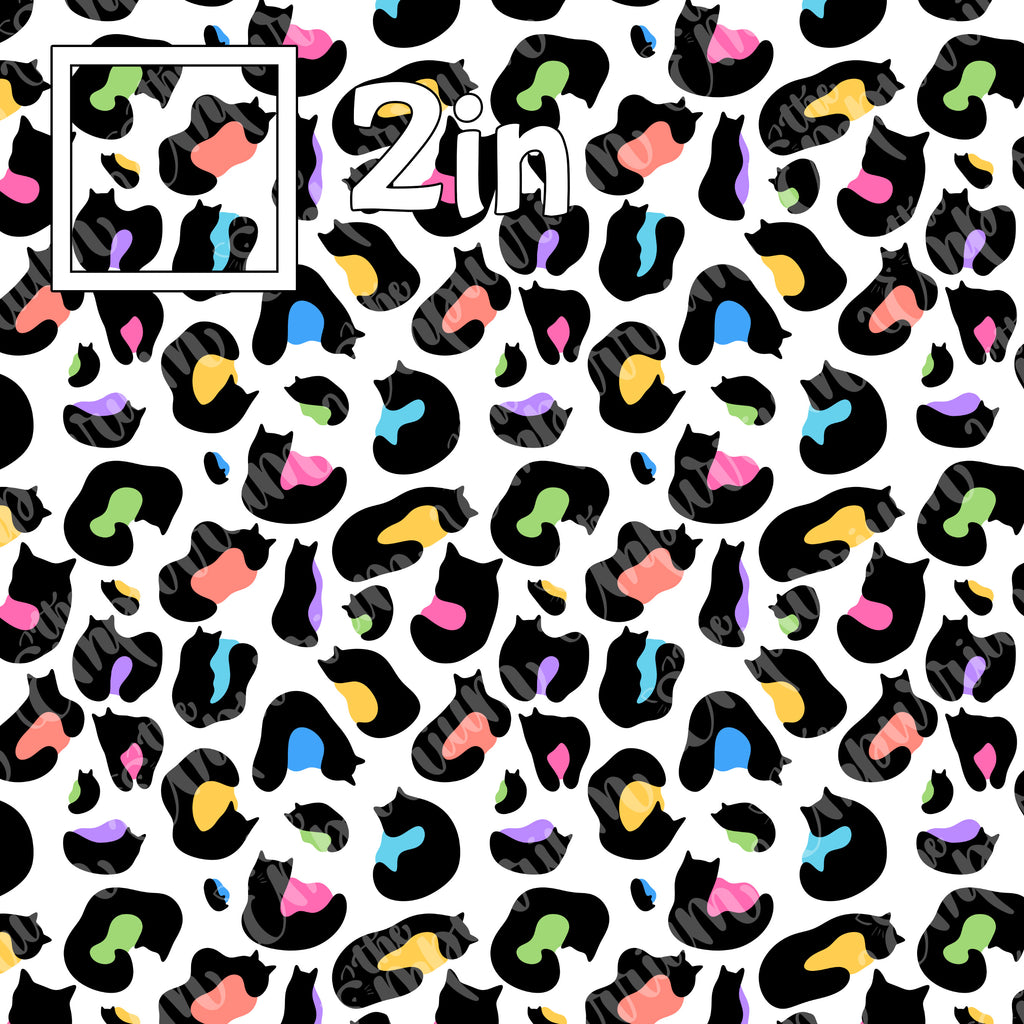 Cat Leopard Rainbow White - Smooth Vinyl Roll