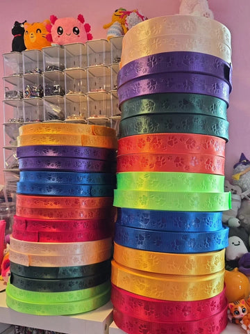 Red - Debossed Paw Print Webbing - 1.5" Wide Webbing